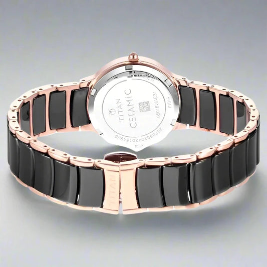TITAN 95215KC01 Titan Purple Ceramics Quartz Analog Mother of Pearl Dial White Ceramic Strap Watch For Women