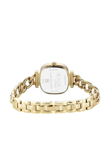 Titan Raga Showstopper Quartz Analog Mother Of Pearl Round Dial Golden Metal Strap Watch For Women nt95275ym01 Women's Watch