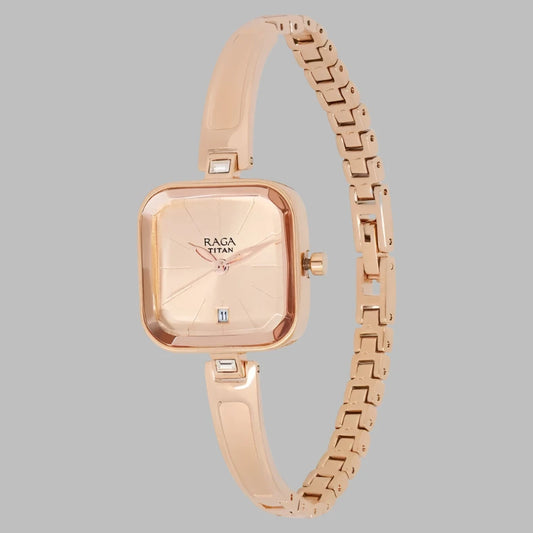 Titan Raga Showstopper Quartz Analog Rose Gold Dial Metal Strap Watch For Women