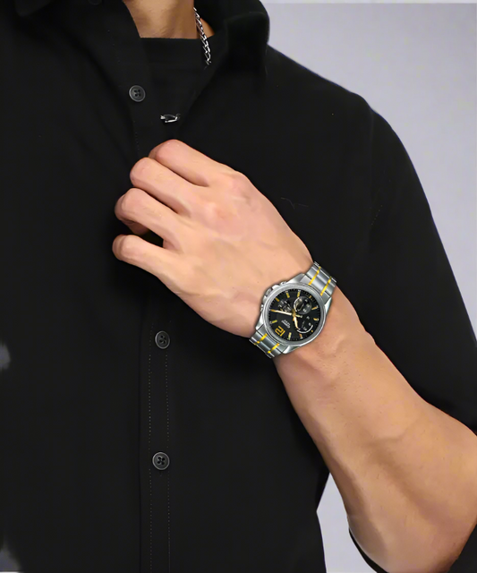 Escort offers stylish men’s black dial watches, such as the Escort Analog Black Dial Men's Watch (E-1600-7242 BL.3). These watches feature sleek black dials and straps, making them suitable for any occasion.