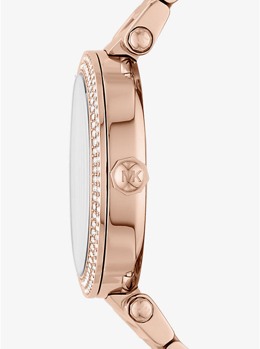 - Ladies Michael Kors Parker Chronograph Watch Rose Gold MK5896: The Parker Chronograph is an exquisite rose gold timepiece, adorned with sparkling crystals that exude femininity and bold elegance.