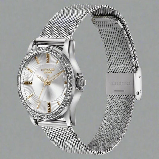 Sonata Poze watches are made from high-quality materials such as stainless steel, leather, silicone, and crystal accents for added elegance.