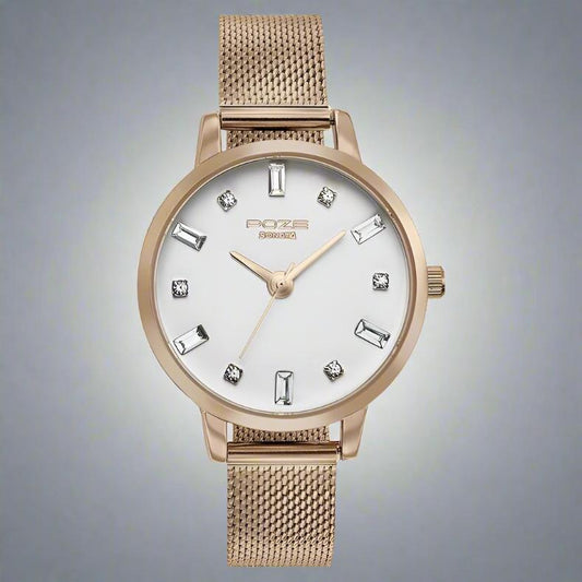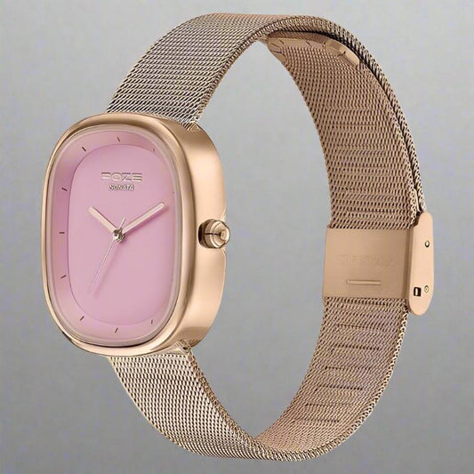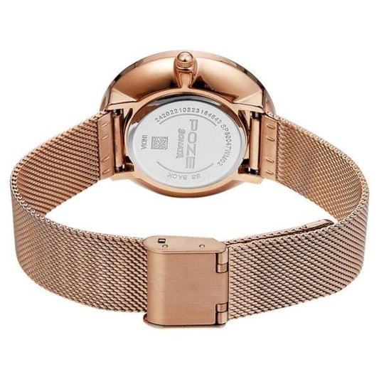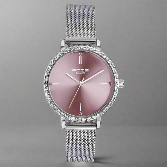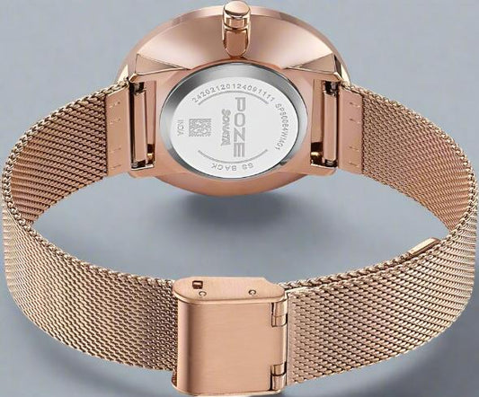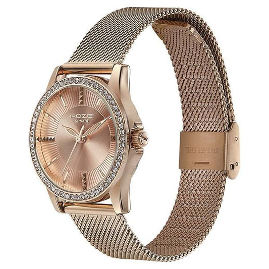 POZE BY SONATA SP80073WM01W QUARTZ ANALOG PINK DIAL MESH STRAP WATCH FOR WOMEN