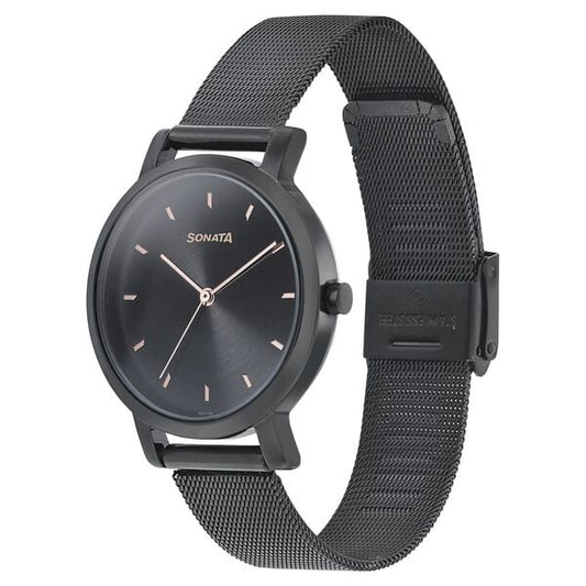 The latest Sonata watches for women in 2025 include elegant mesh strap designs, mother-of-pearl dials, and rose-gold metal strap models from the Poze and Unveil collections.