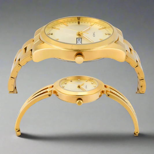 TIMEX TW00PR307 Gold Analog Couple Watch