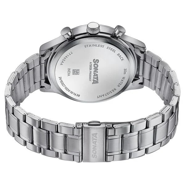 🕒 Sonata Wedding Edit Quartz Multifunction Blue Dial Stainless Steel Strap Watch for Men