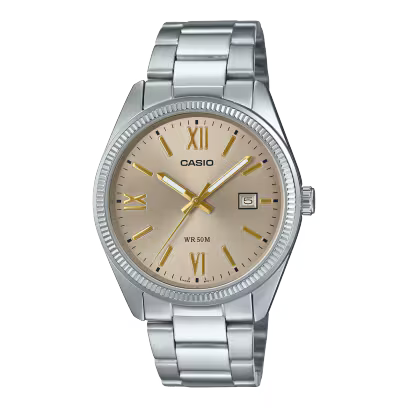Striking and sophisticated — a chic metal timepiece with classic hour, minute, and seconds hand design takes on soft, sumptuous color. The sunray dial delivers a deceptively simple, luxe appearance. The easy-read date display at the 3 o’clock position adds an extra handy touch. Water resistance up to 50 meters frees you from worry, even on rainy days.