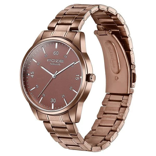 Sonata Poze Quartz Analog Brown Dial Stainless Steel Strap Watch For Men
