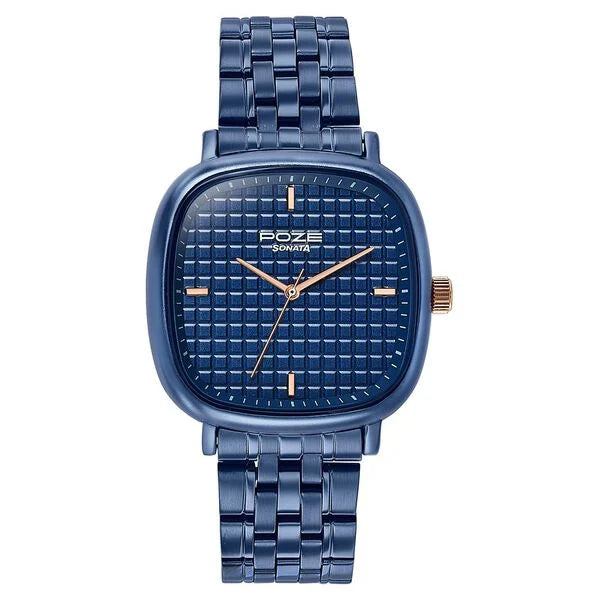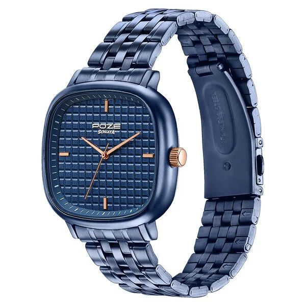 Sonata Poze Quartz Analog Blue Dial Metal Strap Watch For Men