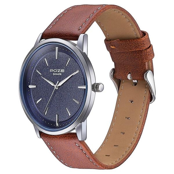 The Sonata Poze Quartz Analog Blue Dial Leather Strap Watch for Men (Model: SP70054SL01) is a stylish and budget-friendly timepiece from Sonata's Poze collection, designed to offer a blend of elegance and functionality.