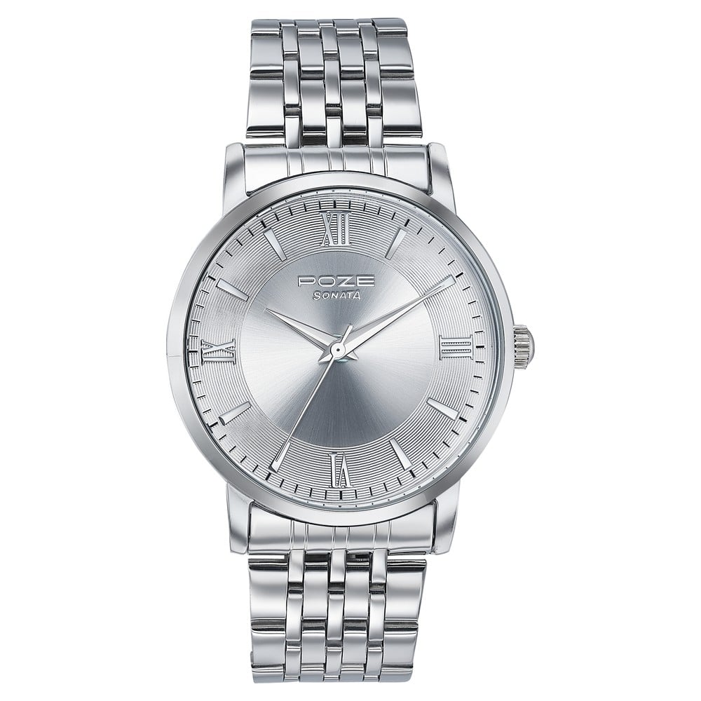The Sonata Poze Quartz Analog Silver Dial Metal Strap Watch for Men is a stylish and functional timepiece designed for everyday wear. Here's a breakdown of its key features: