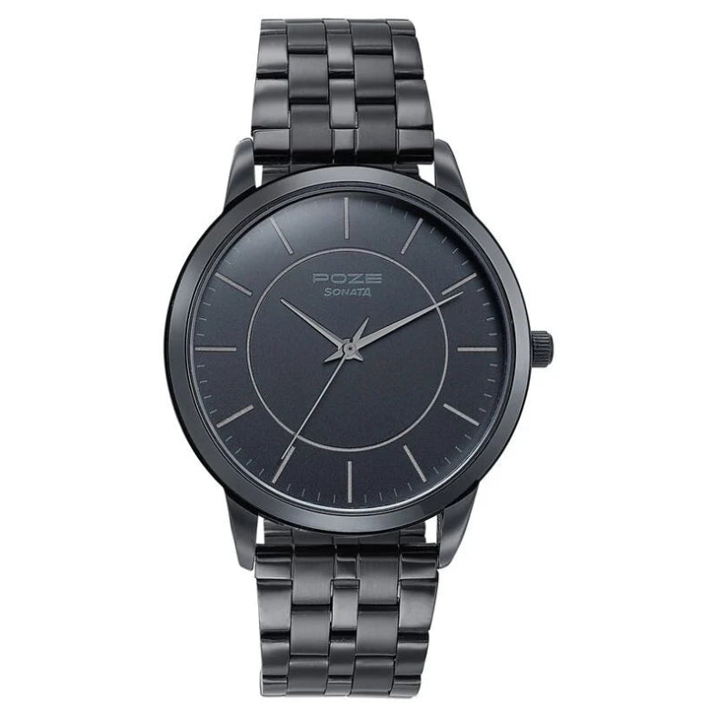 The Sonata Poze Quartz Analog Black Dial Metal Strap Watch for Men is a classic and versatile timepiece that blends sleek design with practicality. Here's a detailed look at its features: