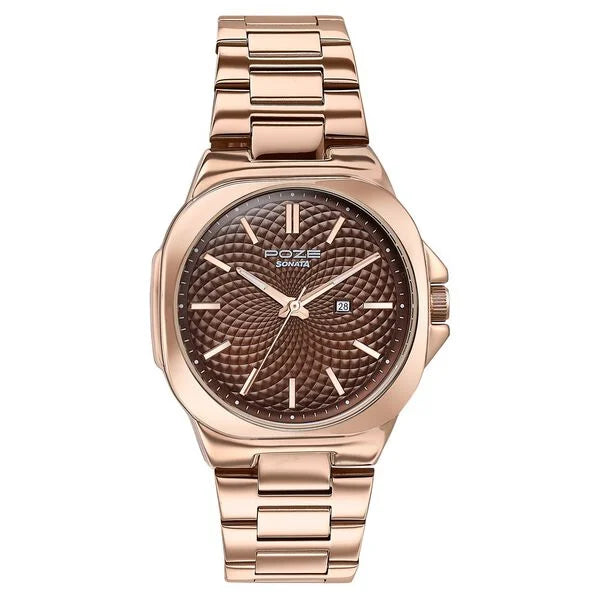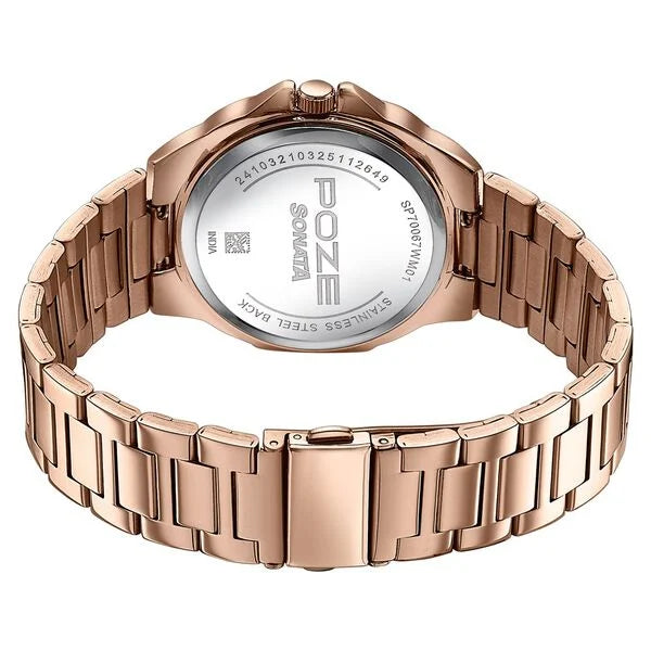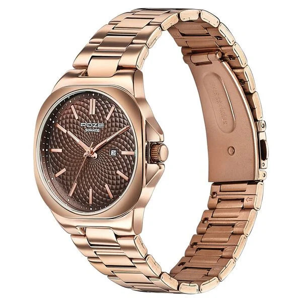 Sonata Poze Quartz Analog Brown Dial Rose Gold Colour Stainless Steel Strap Watch For Men.