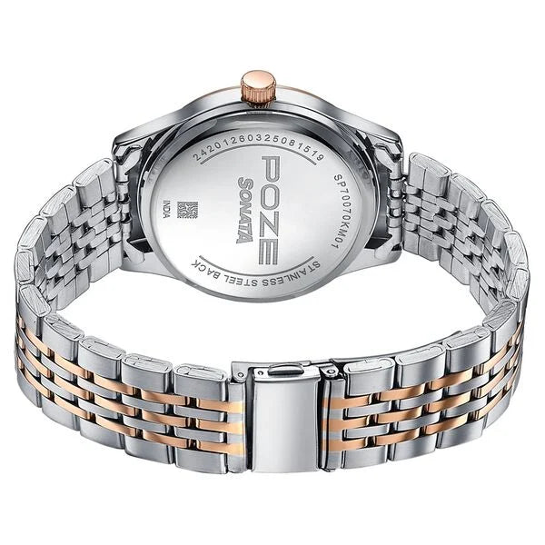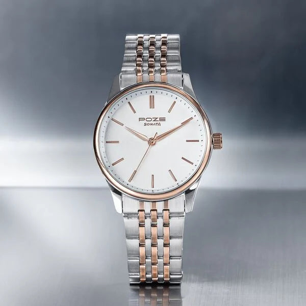 Sonata Poze Quartz Analog White Dial Two Toned Colour Stainless Steel Strap Watch For Men