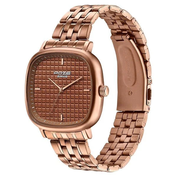 Sonata Poze Quartz Analog Brown Dial Brown Colour Stainless Steel Strap Watch For Men
