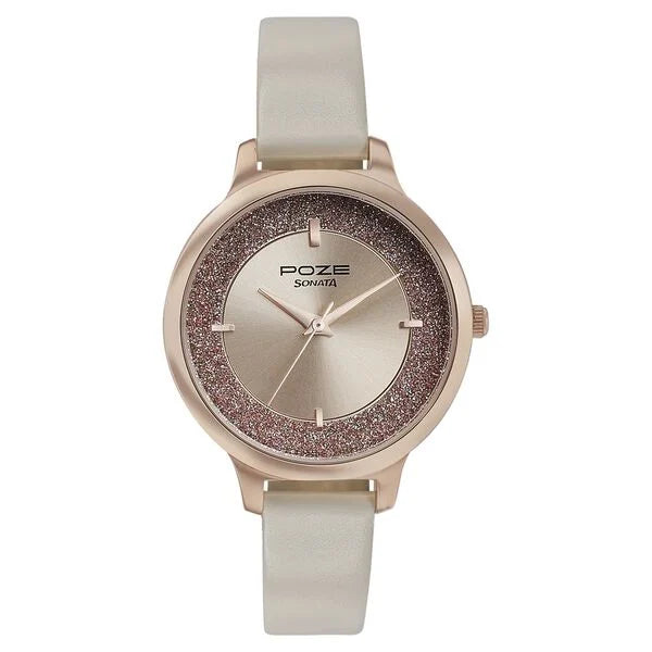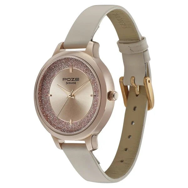 The Poze by Sonata Quartz Analog Pink Dial Leather Strap Watch for Women is another stylish and elegant timepiece designed with a feminine touch. Here's a more detailed look at its features: