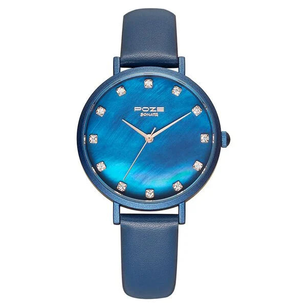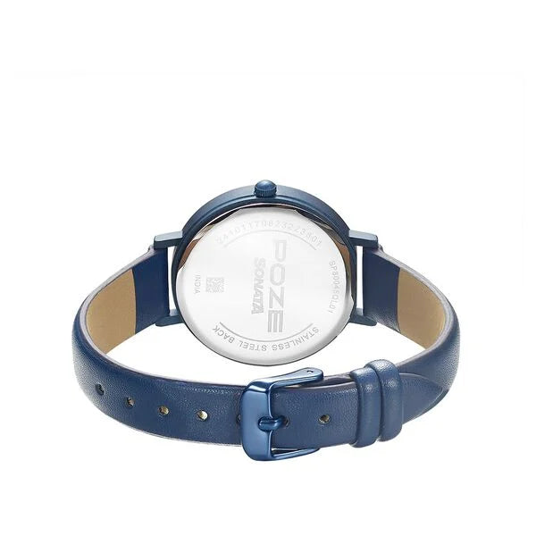 The Poze by Sonata Quartz Analog Blue Dial PU Leather Strap Watch for Women is a stylish and affordable timepiece designed for everyday wear. Priced at ₹975 (originally ₹1,395), it offers a blend of elegance and functionality.