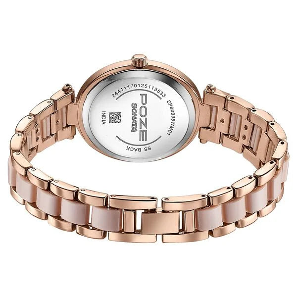 Certainly! Here's a detailed overview of the Sonata Poze Quartz Analog Brown Mother Of Pearl Dial Bimetal Strap Watch for Women: