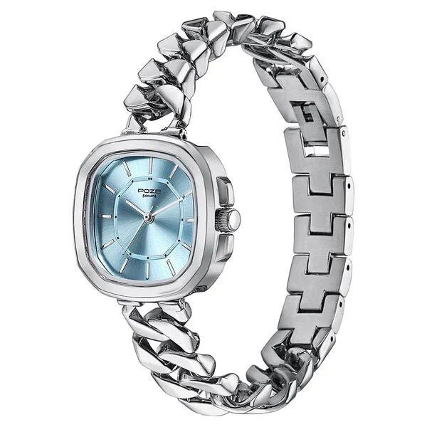 The Sonata Poze Quartz Analog Blue Dial Metal Strap Watch for Women (Model: SP80096SM01) is a stylish and affordable timepiece from Sonata's Poze collection, designed to offer a blend of elegance and functionality.