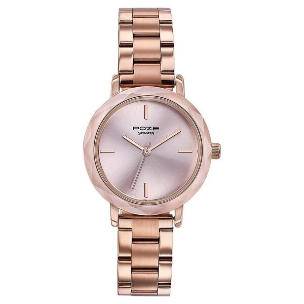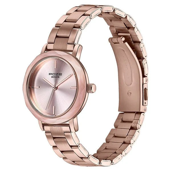 Sonata Poze SP80099KM02: Priced at ₹1,895 (MRP ₹2,710), this watch features a pink dial with a rose gold stainless steel strap.