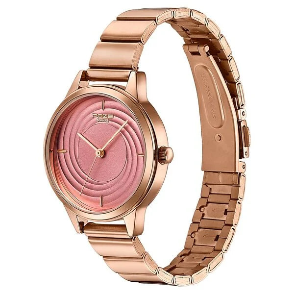 Certainly! Here's an overview of the Sonata Poze Quartz Analog Pink Dial Stainless Steel Strap Watch for Women (Model SP80114WM02):