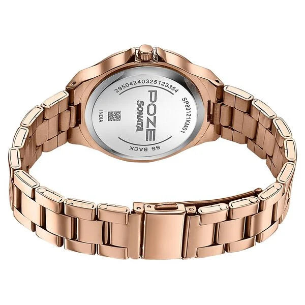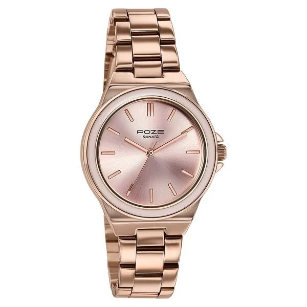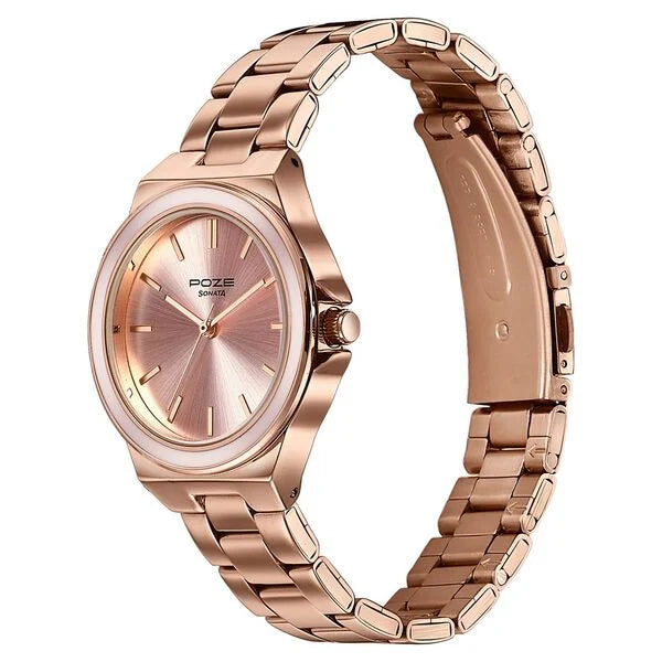 Sonata Poze Quartz Analog Pink Dial Rose Gold Colour Stainless Steel Strap Watch For Women