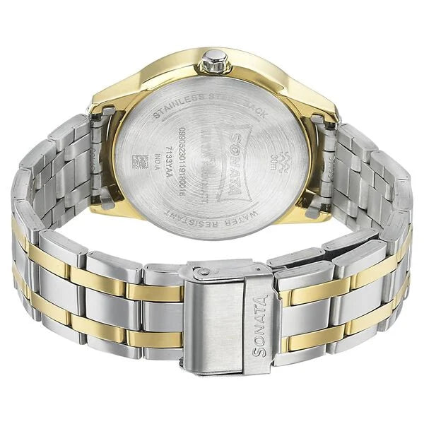 Certainly! Here's a detailed overview of the Sonata Quartz Analog with Day and Date Silver Dial Bimetal Strap Watch for Men (Model: 77031YM03J):
