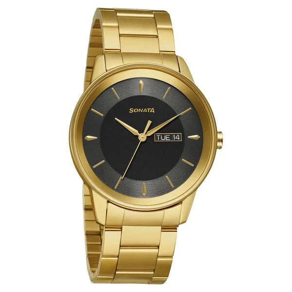 The Sonata Quartz Analog with Day and Date Grey Dial Stainless Steel Strap Watch for Men is a sleek and functional timepiece with a modern design. Here are the main features: