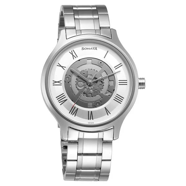 The Sonata Unveil Quartz Analog Silver Dial Stainless Steel Strap Watch is a sleek, stylish, and reliable timepiece designed for men who prefer a clean, modern look. Here’s an overview of its key features: