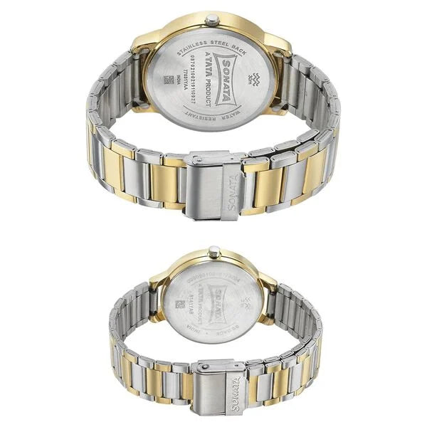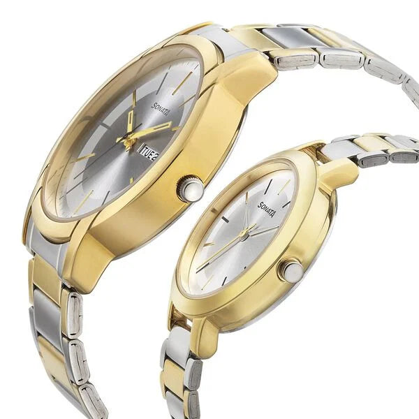 1. Sonata Quartz Analog Silver Dial Metal Strap Watch for Couple