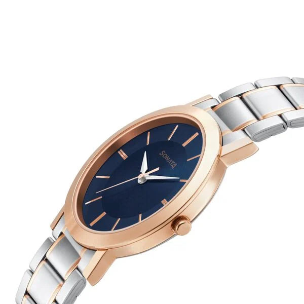 The Sonata Quartz Analog Blue Dial Stainless Steel Strap Watch for Men is a timeless and elegant timepiece that blends sophistication with practicality. Here’s a breakdown of its features: