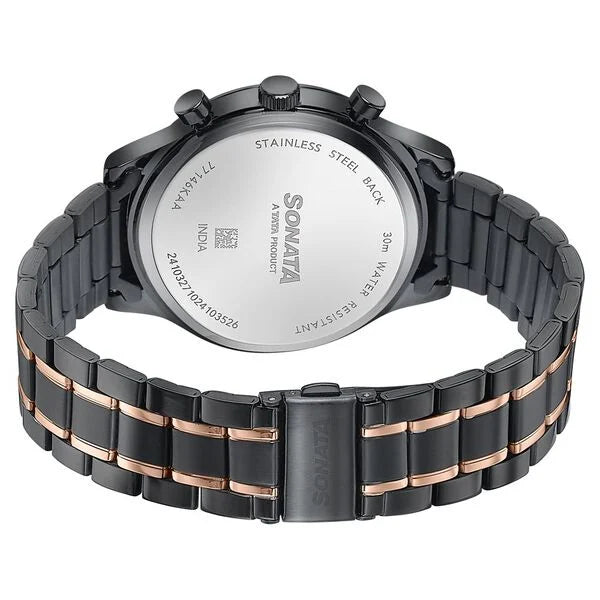 🕒 Sonata Wedding Edit Quartz Multifunction Black Dial Stainless Steel Strap Watch for Men