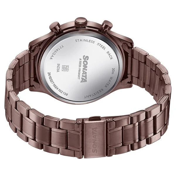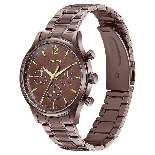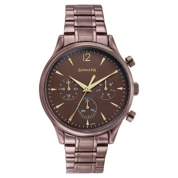 Sonata Wedding Edit Quartz Multifunction Brown Dial Stainless Steel Strap Watch for Men