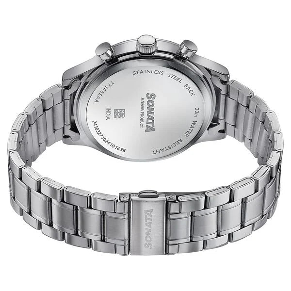 🕒 Sonata Wedding Edit Quartz Multifunction Silver Dial Stainless Steel Strap Watch for Men