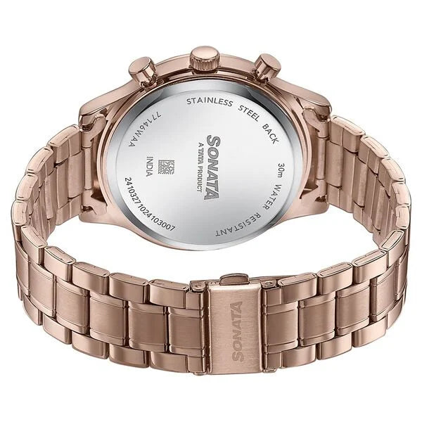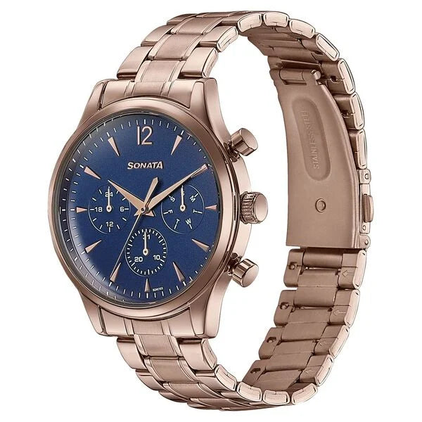 🕒 Sonata Wedding Edit Quartz Multifunction Blue Dial Stainless Steel Strap Watch for Men
