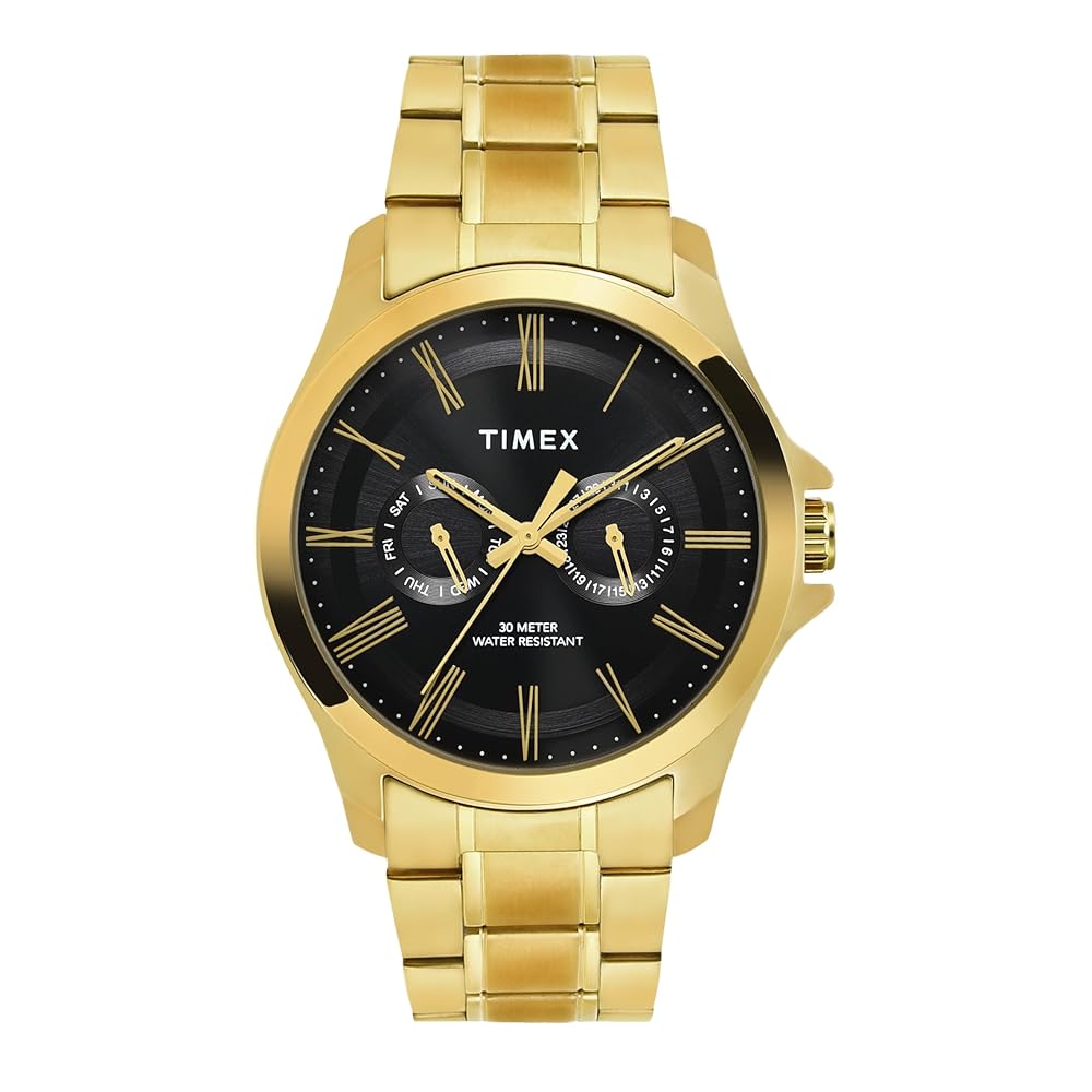 Timex Classics Analog Men's Watch - TW000X129 | Black Dial with Gold Stainless Steel Bracelet | Water-Resistant Timeless Style