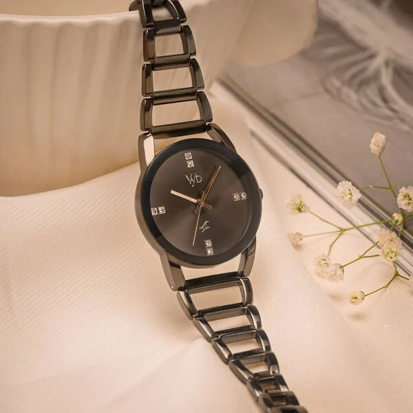 The Vyb Striker By Fastrack Quartz Analog Grey Dial Metal Strap Watch for Girls is another stylish and trendy timepiece from Fastrack, designed to cater to young women. Here are some key features of this watch: